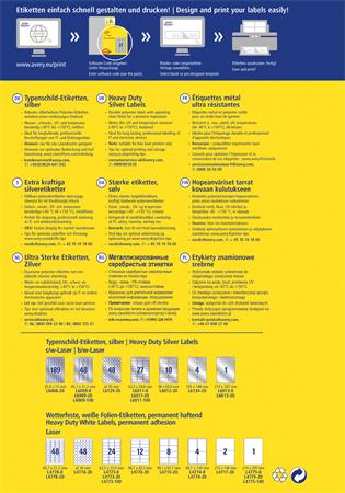 Etikett, 63,5x29,6 mm, poliészter, időjárásálló, AVERY ZWECKFORM, ezüst, 540 etikett/csomag